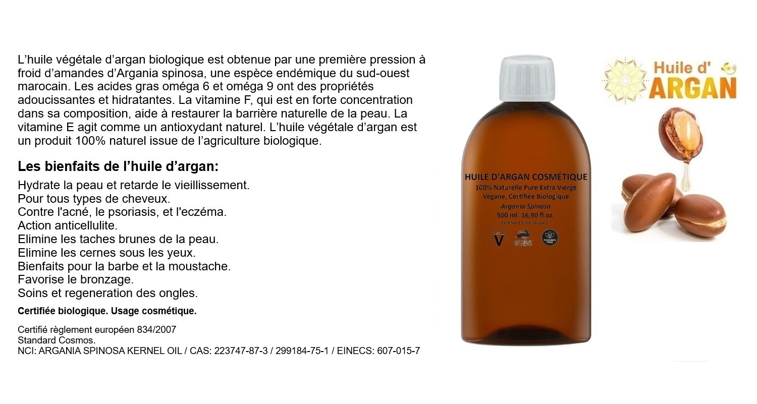 Aceite de argán bio 100% puro Frasco de 500 ml